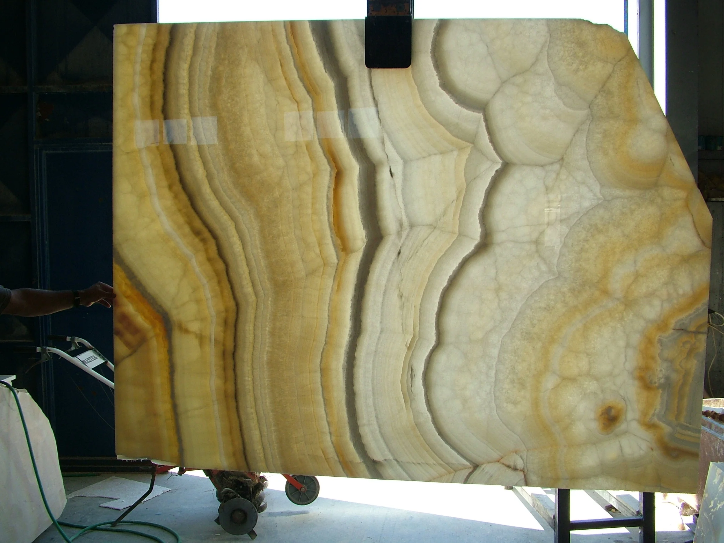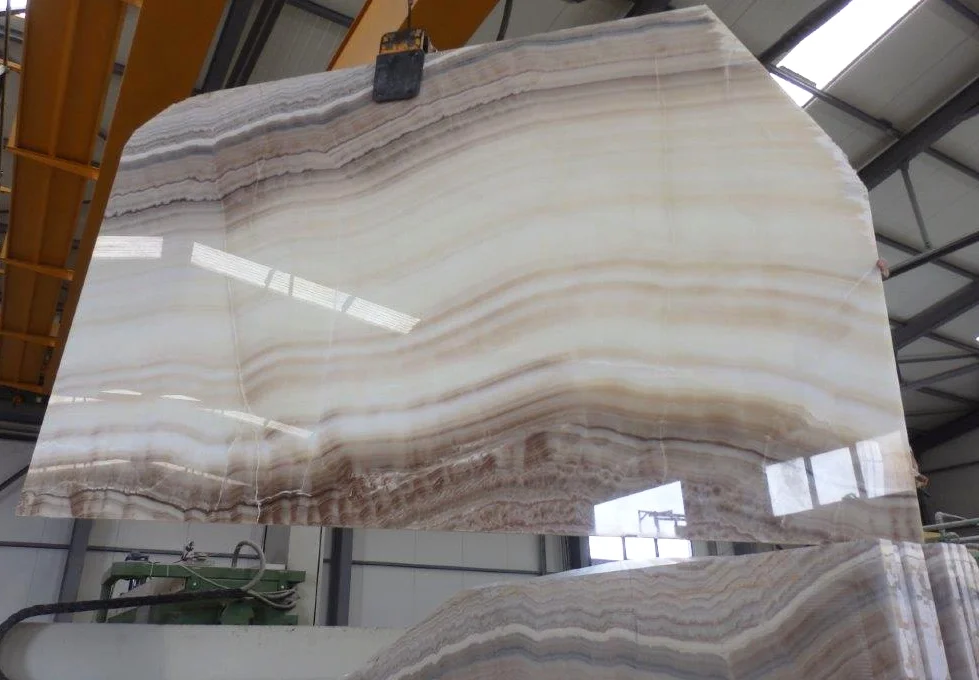 AMC Natural Stones heeft een aantal blokken laten verzagen tot platen voor eigen voorraad.